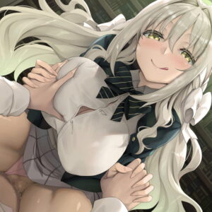 先生の手を自分の巨乳に押し付けながら図書室で騎乗位エッチするブルアカのミヨのエロ画像!